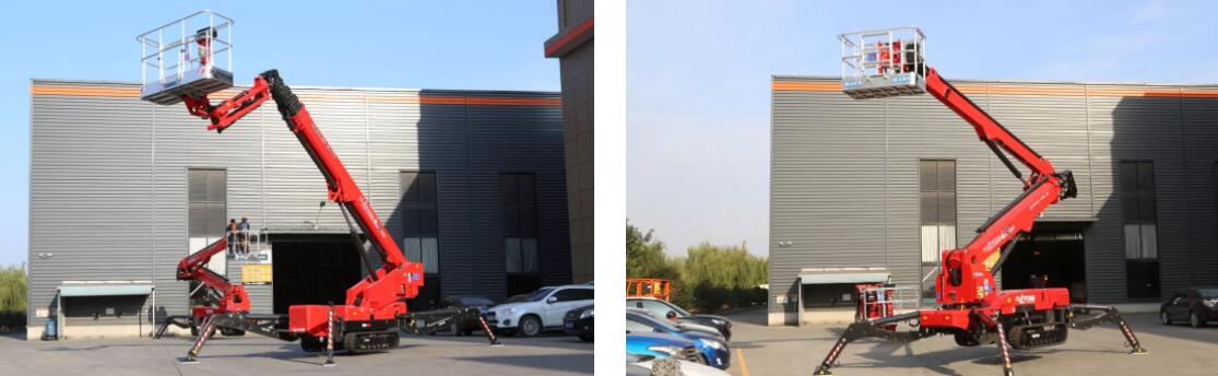 传统臂式工作高度超过15m往往尺寸偏大,稍显笨重,整机重量超过10吨。蜘蛛车采用履带式设计,车型紧凑,宽度不超过1.5米、高度不超过2米,即便是工作高度到达30米,其重量基本也不超过5吨,不仅运输方便,还可轻松进出房屋,通过性强。