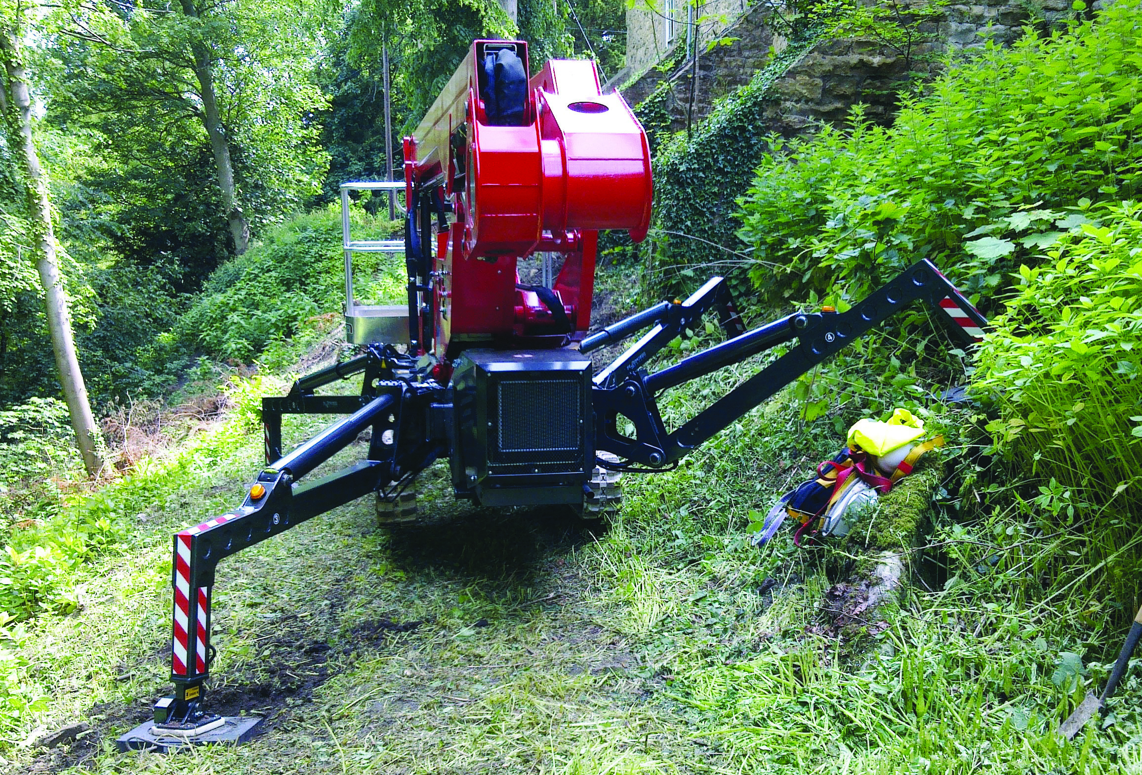 · 4条支腿伸开调平后,受力面积大大增加,整机更稳、更安全。