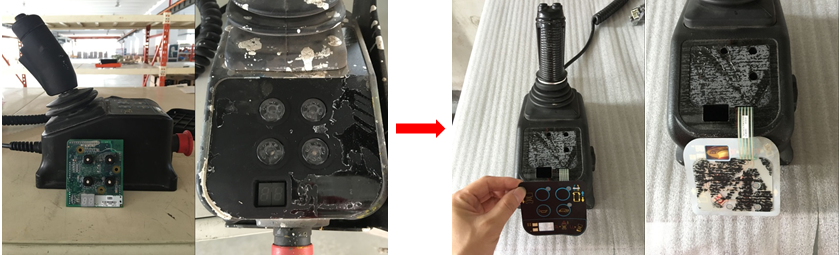 b、手柄采用霍尔技术(霍尔开关),冗余设计,面板按键采用覆膜开关。