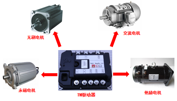 TM驱动器内集成永磁,他励,无刷,交流电机驱动,三路电机独立控制,带安全回路检测,大功率覆盖范围广,具有再生制动功能,在制动时对电池进行回充电,延长电池寿命。