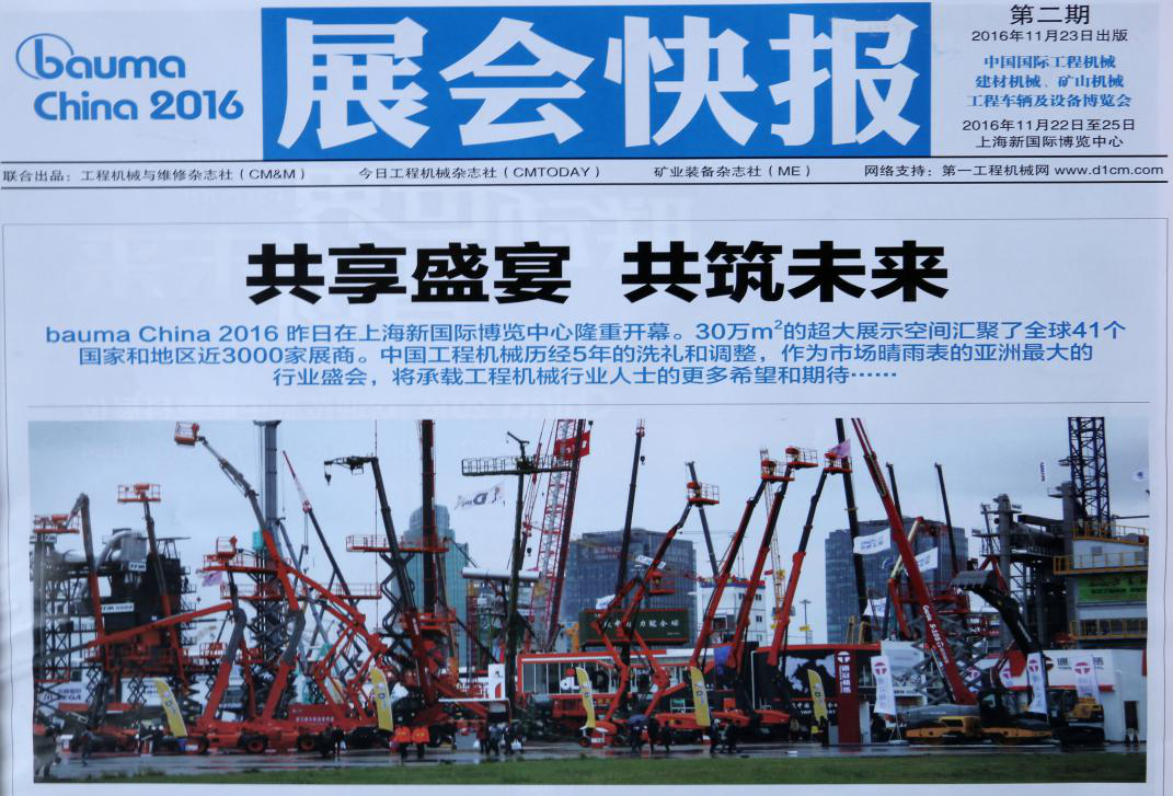 11月25日,为期4天的2016上海宝马展(bauma China 2016)圆满落幕。本届宝马展汇聚了全球41个国家和地区近3000家展商,吸引了来自149个国家和地区的逾17万名专业观众前来观摩和洽谈,见证了中国工程机械行业的新高度,昭示着中国工程机械行业的新曙光。