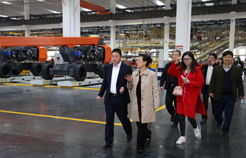梁黎明一行参观了浙江鼎力现代化生产车间,面对井然有序的生产场景,梁黎明非常满意。