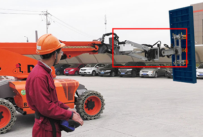 凭借在高空作业平台行业的科研能力,成功研发出一种智能机器人模板举升车。该举升车能够实现对模板的抓取、转运、举升和装卸等工作,适用于多种工程建设领域,可大大减轻劳动强度,提高被覆作业能力。