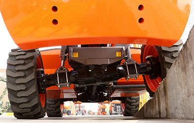 (1)美国进口整体式4×4定制多功能车桥,动力强劲;内置湿式刹车装置能有效避免灰尘、沙子的侵入腐蚀,特别适用于环境恶劣的施工场所;而变量柱塞泵和变量马达组成的闭式液压驱动系统使得驱动效率更高。