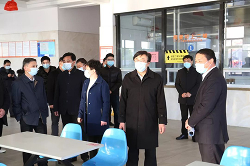 在公司餐厅,冯飞详细查看了标识标牌、分餐就坐等一系列疫情防控措施,对鼎力防疫做法表示放心。