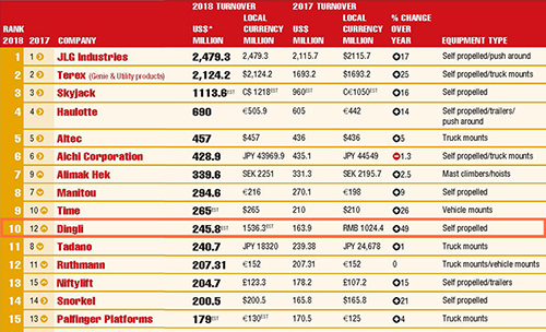 跻身10强!2018年全球高空作业平台 制造商20强榜(Access M20)发布!