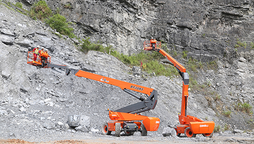 鼎力新臂式系列95%主要部件通用、80%结构件通用,传统臂式零部件和结构件几乎不通用。 o 10款不同高度的机型只要会维修保养1款,即可应对所有机型,租赁公司的设备维修保养效率提升,维修维护和人工成本降低。 o 10款不同高度的机型只需购置1套易损配件,即可应对所有机型突发故障,租赁公司的设备维修配件采购成本、仓储成本降低。 2、下沉式设计 与老款车型的外形相比,鼎力新臂式系列将主要部件、配重重心进行了下移。 o 新臂式系列重心均下移,产品稳定性能更好。 o 部件均位于底盘两侧,租赁公司维修保养方便。 o 市场主流臂式产品底盘和转台所用钢材以Q345为主,大臂以Q700为主,鼎力新臂式底座和转台采用Q700,大臂为Q960,强度更高,所以同样厚度的板材新臂式可以承受更高的重量,在相同的承载情况下,整体重量也相对更轻。 3、工程机械专用车桥 较传统车型底盘相比,鼎力新臂式系列均搭载了美国德纳工程机械专业车桥。 o 取消了分流阀压力损失,传动效率相比传统轮边减速驱动高20%以上,动力更强劲。 o 自带100%差速锁,在三个轮胎打滑情况下,启动差速锁,仍可前行,胜任恶劣工况;最大爬坡能力达50%,越野性能更强。