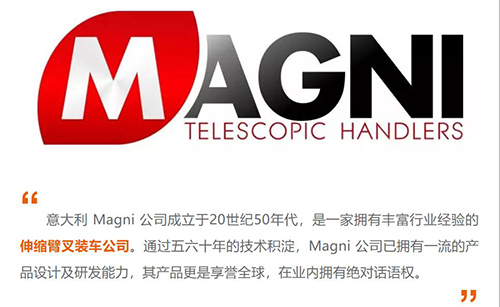 在一次偶然的国际展会上,浙江鼎力董事长许树根先生一眼相中意大利 Magni 公司的伸缩臂叉装车展品,被其充满创新意识的设计所吸引。折服于Magni公司的设计能力,浙江鼎力和 Magni 公司的沟通协作拉开序幕。