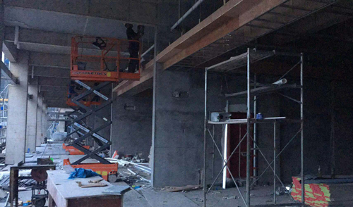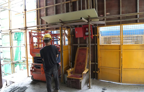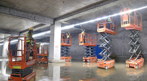 该医院项目内部楼层间,普遍层高为3~4米,中大型高空作业平台大材小用,结合实际作业环境,该项目选取了具备通过性强、可灵活进出客梯等优势的小剪叉平台,在小剪叉平台的助力下,医院内部装饰工程快速推进。施工案例----香港某商场地下车库