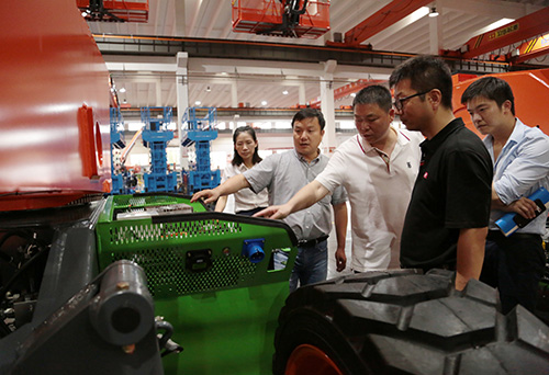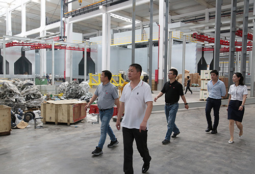 三期电动臂车总装线、四期总装车间,详细查看了电动臂车装配制造工艺及未来四期现代化智能工厂,并表达了殷切期待。