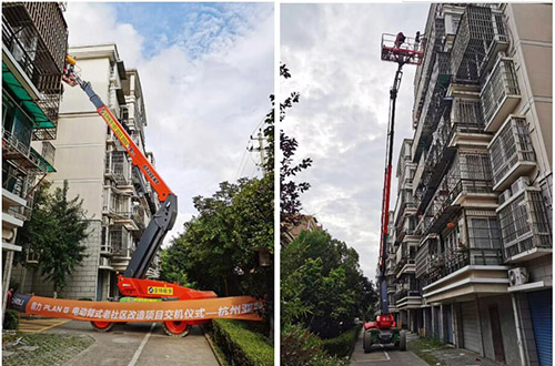 电动臂车交付杭州亚特租赁,入驻老旧小区改造项目