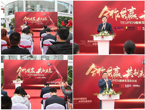 未来,鼎力也以此次 电动臂式系列交机活动 为契机,与宏信建发 继续精诚合作,为中国设备租赁市场的健康发展,做出应有贡献。 鼎力H 西瓜影院,11展位 下午3点整,由宏信建发、赫兹设备、浙江鼎力共同参与的第二场合作共赢&共创未来TEUPEN蜘蛛车交机仪式活动 盛大启幕。。