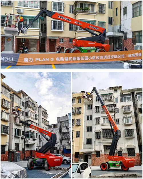 鉴于电动臂式系列无噪音、零排放、无污染的环保优势,当前在一线城市的老旧小区改造项目中,电动臂式广受居民欢迎,已然成为主战场。