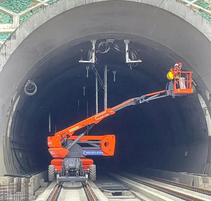 在大型基建项目中,轨道运输是提升效率的关键,鼎力轨道高空车专为隧道内作业设计,具备400kg荷载能力 西瓜在线电影,12km/h的行驶速度,可快速完成设备转运和人员输送,适应复杂施工环境。